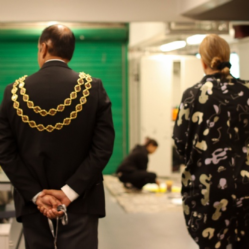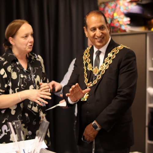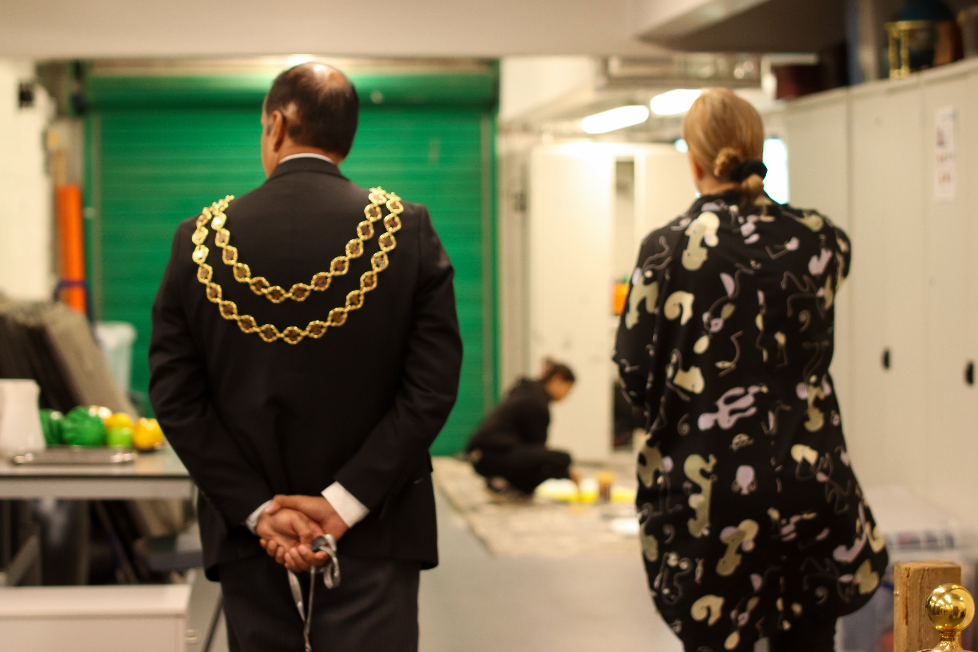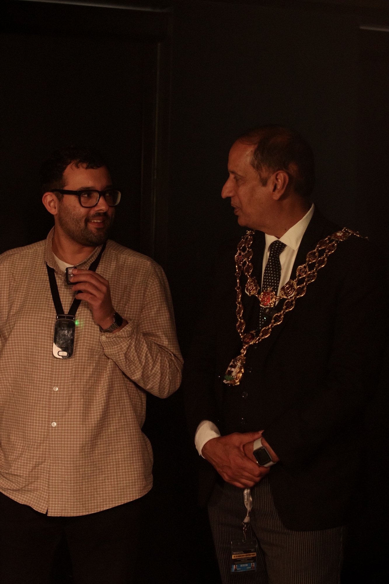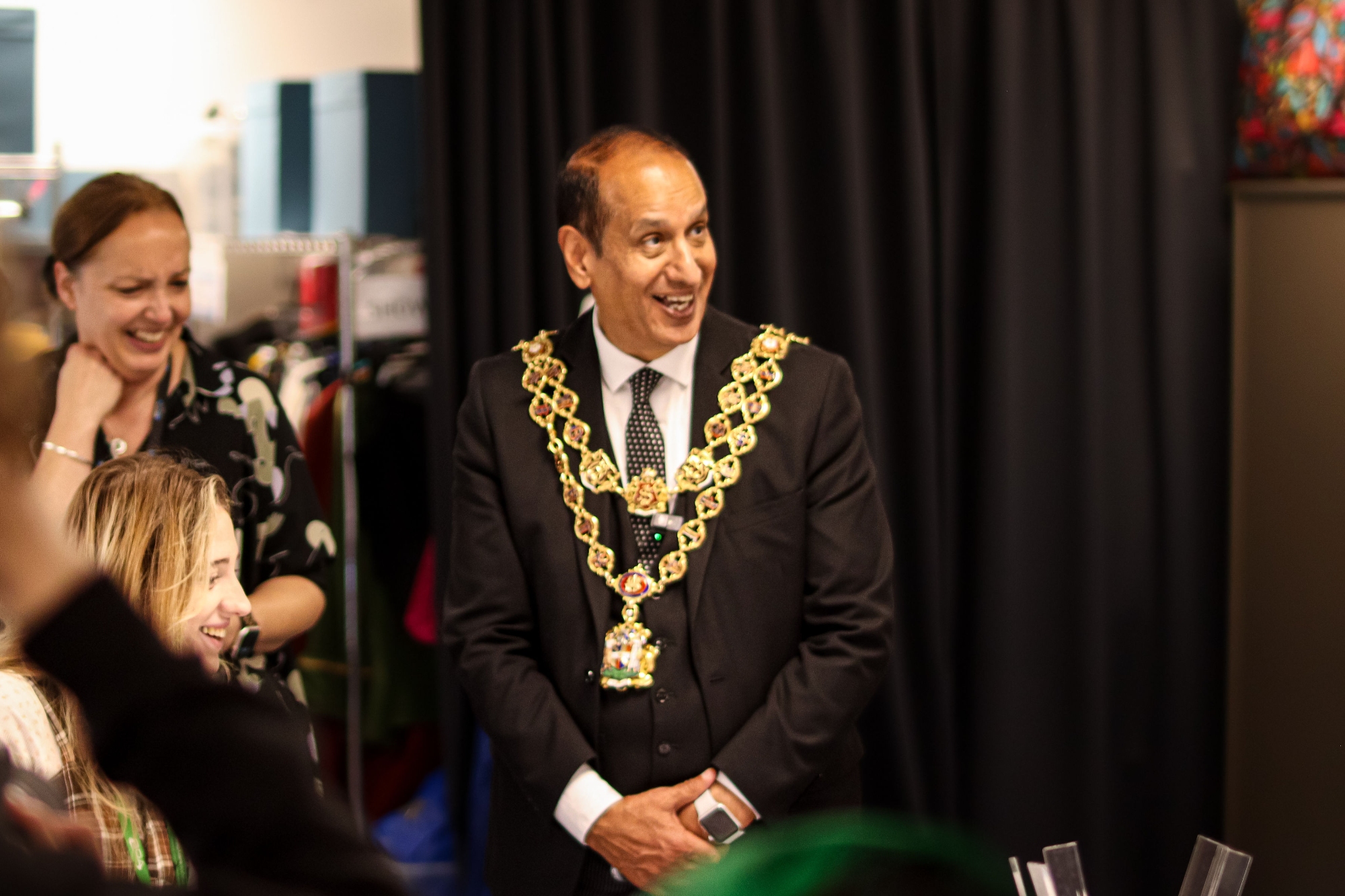 During the tour, the Lord Mayor enjoyed an immersive behind-the-scenes journey through the Academy’s specialist departments. In the TV & Film department, he watched a live filming of student-led interviews and the fast-paced editing process from the gallery. In Hair & Make-Up, he saw students transform into goblins as well as master intricate 1960s beehives. The Lighting & Sound department impressed with an exciting light show, while Set, Props & Costume showcased their stunning progress on costumes and designs for Cinderella, which will be staged at The Old Rep this Winter. Meanwhile, Writing, Directing and Screen Craft students captivated visitors with a session of live improvisation, highlighting the Academy’s focus on collaboration and creativity across all disciplines.