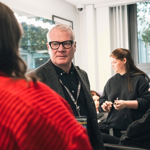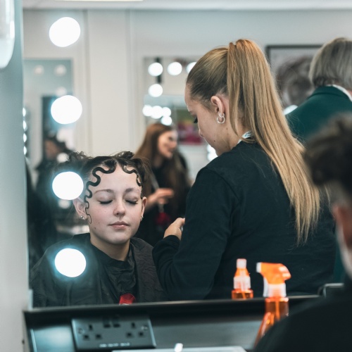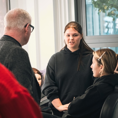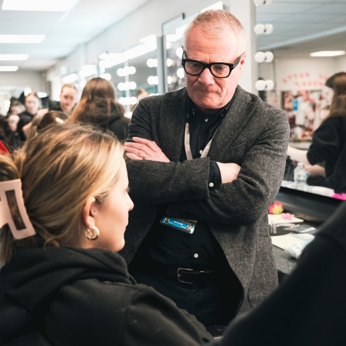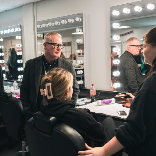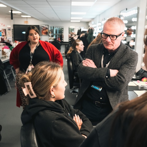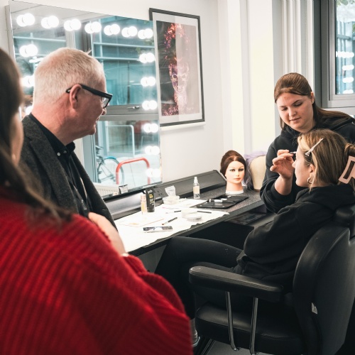 In the Hair & Make Up studios, students discussed their skills development and work placements at leading Midlands venues, including the Old Rep and the Royal Shakespeare Company. The recently refitted studio reflects the Academy’s growth, providing the space needed for expanding cohorts. Students also showcased the stunning make-up looks they had been working on that morning — creations so professional they could easily grace a runway or a film set.